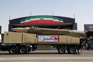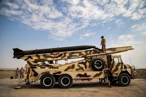 سومار:[371][372][373][374] هو صاروخ بري جوال[11][12][13] بعيد المدى قادر على حمل رؤوس نووية.[375][376][377] يعمل بالوقود الصلب، والذي يمثل بدايةً ناجحة للصواريخ الإيرانية الجوالة، ويُعَد من أهم وأخطر ما توصل إليه الخبراء الإيرانيون في هذا المضمار،[378] خاصةً أنه صاروخ بعيد المدى ويتراوح مداه من (2500-3000) كيلومتر، وهو أحد أجيال الصواريخ الباليستية کروز. وهو أشبه بصاروخ (خا – 55) السوفيتي فإنه قد يتمكن من استهداف مرماه ليس فقط في منطقة الشرق الأوسط فحسب، بل أيضاً في جنوبي وشرقي أوروبا،[379][380] ويُعتبَر سومار جيل جديد من الصواريخ الباليستية كروز الإيرانية، ومُصّنَع بخبرات متخصصين في مؤسسة الصناعات الدفاعية الإيرانية.[381][382][383] أُزيحَ الستار عن هذا الصاروخ في 9 مارس 2015م بواسطة العميد حسين دهقان وزير الدفاع الإيراني. وقد اختبرته جمهورية إيران بنجاح عام 2017م،[384] بحسب ما نقلت صحيفة «دي فيلت» الألمانية يوم 2 فبراير/شباط 2017م عن مصادر مخابراتية لم تسمها. وصاروخ «سومار» جرى تصنيعه في إيران وحلق لنحو 600 كيلومتر في أول اختبار ناجح مُعلَن لإطلاقه. ونقلت الصحيفة عن مصادر مخابراتية قولها إن الصاروخ قادر على حمل أسلحة نووية ويمكن أن يتراوح مداه بين 2000 و3000 كيلومتر. يُذكَذ أن إمكانية صد صواريخ كروز أصعب مقارنةً بالصواريخ الباليستية، حيث إنها تُحّلِق على مستويات منخفضة ربما لا تلتقطها أنظمة الرادار مما يُربِك أنظمة الدفاع الصاروخية، كما أن بإمكان كروز ضرب أهداف في عمق أراضي الخصم.[385][386][387][388] ويمتلك صاروخ سومار إمكانات متميزة عن بقية الصّواريخ خصوصاً فيما يتعلّق بأنظمة التّحكّم، هيكل الصّاروخ وأنظمة الدّفع (أو الإطلاق).[389][390][391][392][393] وتجدر الإشارة هنا، إلى أن وزارة الدفاع الإيرانية أطلقت على هذا الصاروخ اسم سومار استشهاداً بمنطقة عمليات عسكرية شهيرة إبان حرب الخليج الأولى.[394][395]