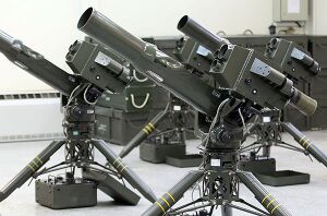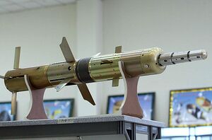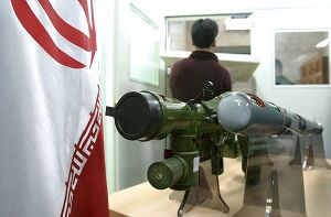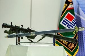 صاعقة: هو صاروخ إيراني يأتي بنسختين صاعقة 1 و2 ويُعتبَر صاروخ صاعقة من ضمن الصواريخ الإيرانية المضادة للدروع والذي يتميز بقدرة اختراق الدروع بسماكة 500 ملم وإصابة الأهداف الثابتة على بعد 1000 متر.[575] ان صاروخ صاعقة هو صاروخ قصير المدى مضاد للدروع يزن 14.5 كلغ ويمكن حمله بسهولة من قبل شخص واحد. ويمكن توجيه هذا الصاروخ سلكياً، ونظراً للدقة العالية في نظام التتبع يمكنه استهداف جميع الأهداف المتحركة والثابتة وبدقة 90 بالمئة. وأفادت وكالة تسنيم الدولية للأنباء بأن الخبراء الإيرانيين نجحوا حتى اليوم بتصميم وإنتاج أنواع من الصواريخ الموجهة المضادة للدروع. وصاروخ صاعقة هو أحد تلك الصواريخ.[576]
