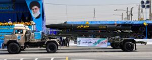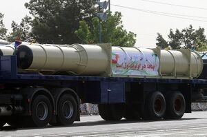 شهاب-3: هو صاروخ بالستي متوسط المدى (MRBM) طورته جمهورية إيران، ويصل مداه برأس حربي يبلغ وزنه 1200 كلغ إلى 1300 كيلومتر، وبرأس حربي من 1000 كلغ إلى 1500 كيلومتر، ومع رأس حربي من 800 كلغ إلى 1700 كيلومتر. ويحمل رأساً حربياً، ومنها ما هو قادر على حمل قنابل انشطارية وزنه 1000 كيلو غرام وهو صاروخ صُنِعَ لأول مرة في إيران واعلنت عنه سنة 1998م وطورته الجمهورية الإسلامية الإيرانية سنة 2003م ليصل إلى مدى أطول وبمراحل ثنائية الدفع.[30][31] وقد تمخضت مساعي الخبراء والمختصين الإيرانيين خلال العقود السابقة في مجال تصنيع الصواريخ الباليستية وتطوير وتحسين أجيال صواريخ شهاب، عن إنتاج الصاروخ شهاب - 3، ليكون أحد أفضل وأشهر الصواريخ الباليستية الإيرانية والقادر على حمل رؤوس حربية مختلفة. وتم تزويد أحدث نموذج من صارخ شهاب-3 برأساً حربياً انشطارياً قادراً على إصابة عدة أهداف منتشرة في نقاط مختلفة من المنطقة المستهدفة بدقة وقوة عالية. فالرؤوس الانشطارية لها إمكانية استهداف أعداد كبيرة من المعدات والقواعد ومراكز العدو في مساحة واسعة بواسطة قنابل صغيرة وتدميرها بالكامل.[32] ويتمتع صاروخ شهاب 3 بمزايا تجعله إضافة نوعية إلى ترسانة الأسلحة الإيرانية، فإلى جانب سرعته الفائقة ومداه الجيد، وقدرته على حمل رؤوس حربية وقنابل انشطارية جعله يمثل تهديداً مباشراً لإسرائيل. وقد أجرت طهران عدة تجارب على شهاب 3 بدأت في يوليو/تموز عام 1998م وانتهت في مطلع شهر يوليو/تموز 2003م. وتعدّه تجسيداً لإستراتيجيتها (الدفاعية الرادعة) ومظهراً لقدرتها في مجال التكنولوجيا العسكرية. وتسلمت قوات الحرس الثوري الإيراني هذا الصاروخ لوضعه في الخدمة عقب احتفال عسكري أقيم آنذاك بهذه المناسبة. ويقول المحللون العسكريون إن هذا الصاروخ الذي يُعَد أكثر الصواريخ الإيرانية إثارةً للجدل وأول صاروخ يُطلَق عبر منصة إيرانية الإنتاج. اما مواصفات الصاروخ فيبلغ ارتفاعه 15.852 متر، وقطره 1.32 - 1.35 متر، اما نوع وقود الصاروخ فهو سائل. ان الإعلان عن مميزات ومواصفات هذا الصاروخ ومن جملتها مدى الصاروخ لأنه عكس أكثر الصواريخ الإيرانية دقة وأبعدها مدى، والتي تعود لجيل صواريخ شهاب المدمرة. أي ان إيران تمكنت من تحقيق مستوى عالٍ في تقنية صناعة الصواريخ والتي تُعتبًر الأمل الكبير لإنتاج صواريخ أفضل وأبعد مدى وهذا ما حصل عليه الإيرانيون بالفعل في السنوات التي تلت الإعلان عن صاروخ شهاب 3. وقد تم إنتاج نماذج مختلفة من صواريخ شهاب-3 وانضمت إلى الخدمة في القوات المسلحة في البلاد، بعد تطوير كفاءة ومدى هذه المنظومة الصاروخية إلا أنها جميعاً كانت تعمل بالوقود السائل. اما في مجال تصنيع أنظمة توجيه صاروخ شهاب-3 فقد تم الاستفادة من أجهزة كمبيوتر جديدة لارتقاء مستوى مراقبة عملياتها وتحسين نظام تسارع وانطلاق الصاروخ بالإضافة إلى الاستفادة من (جبروسكوبات) خاصة بحركة وتساع الصاروخ بما يتناسب مع سرعة وانطلاق هذا الصاروخ والذي يُعتبَر تطوراً كبيراً ومهماً في مجال الصناعات الدفاعية الإيرانية. وفي هذا السياق يمكن الإشارة إلى الجيل المتطور من شهاب-3 والذي يحمل اسم (قدر) وهو بفئتين قدر-F وقدر-H.[33] كما وطورت جمهورية إيران صاروخ شهاب-3 ليصبح قادراً على حمل رأس نووي، حيث طورت صاروخاً باليستياً واحداً على الأقل، بمقدوره حمل رأس نووي، بحسب ما أبلغ سفراء فرنسا وألمانيا والمملكة المتحدة سنة 2019م، الأمين العام للأمم المتحدة أنطونيو غوتيريش. وقال السفراء، إن صاروخ شهاب 3 الذي تمتلكه طهران، أُُدخِلَ عليه تحسينات، سمحت له بحمل رأس نووي، يصل وزنه إلى نصف طن على الأقل، لمسافة 300 كيلومتر على الأقل. وذكرت الرسالة التي أبرقها السفراء إلى غوتيريش، شريط فيديو تم نشره على الإنترنت، وثّق تجربة إطلاق صاروخ شهاب 3 الجديد متوسط المدى، والذي وفقاً للسفراء، هو الصاروخ الذي تم إجراء تحسينات عليه.[21][22][23][24][25]