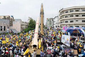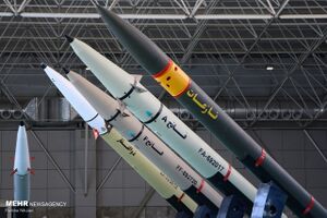 خرمشهر-2: هو صاروخ باليستي إيراني، بعيد المدى يعمل بالوقود السائل. تم الإعلان عنه سنة 2019م، فهو جيل جديد من صاروخ خرمشهر الباليستي الذي تم الكشف عنه سنة 2017م، والذي يُعَد أقوى وأحدث الصواريخ الباليستية الإيرانية بدقة عالية جداً. يتميز هذا الصاروخ بقدرته على حمل رؤوس حربية موجّهة، ويبلغ مداه 2000 كيلومتر برأس حربي واحد أو عدة رؤوس حربية بزنة 1800 كيلوغرام. وبطول 13 متر وقطر 1.5 متر ويزن نحو 20 طن ويعمل بالوقود السائل.[50] وقد عرضت وسائل الإعلام الإيرانية ولأول مرة فيديو لصواريخ خرمشهر-2 الموجهة حتى إصابة الهدف، وذلك يوم الأحد 16 أغسطس 2020م.[51][52][53][54] تأتي أهمية هذا الصاروخ الباليستي الأكثر تطوراً ودقةً، بأنه قادر على ضرب إسرائيل وقواعد أمريكية في الخليج العربي، وقد عَمِدَت طهران على تجهيزه برؤوس حربية موجهة دقيقة جديدة.[55] كشفت جمهورية إيران النقاب عن صاروخ خرمشهر 2 سنة 2019م ليكون بذلك النسخة الأحدث بين عائلة صواريخ خرمشهر الباليستية. وتُعتبَر هذه العائلة الصاروخية، أي خرمشهر 1 و 2 من الجيل الجديد في مجال الوقود السائل، والتي لها محرك مختلف عن عائلتي صواريخ شهاب وقدر.[56] يُذكَر ان أول نموذج لصاروخ خرمشهر تم الإعلان عنه في يوم الجمعة الموافق ل22 سبتمبر/ أيلول 2017م، خلال الإستعراض العسكري للقوات المسلحة الإيرانية في طهران بمناسبة أسبوع الدفاع المقدس (1988-1980) في إشارة إلى الحرب العراقية الإيرانية التي إندلعت خلال تلك الفترة.[57][58][59][60][61]