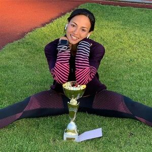 وهي تحمل الأرقام القياسية لبلدها في سباقي 100 و 200 متر.
