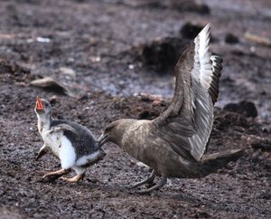 | بطريق جنتو في براون بلوف، شبه جزيرة تابارين. | |