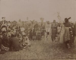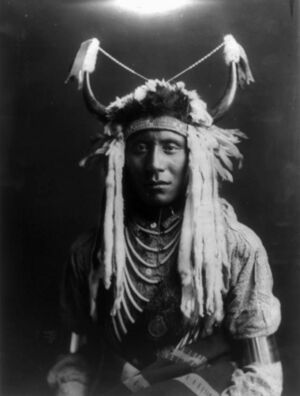 Within the Blackfoot nation, there were different societies to which people belonged, each of which had functions for the tribe. Young people were invited into societies after proving themselves by recognized passages and rituals. For instance, young men had to perform a vision quest, begun by a spiritual cleansing in a sweat lodge.[50] They went out from the camp alone for four days of fasting and praying. Their main goal was to see a vision that would explain their future. After having the vision, a youth returned to the village ready to join society.