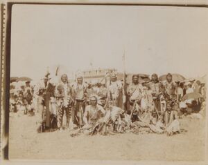 Each of these highly decentralized peoples were divided into many bands, which ranged in size from 10 to 30 lodges, or about 80 to 240 persons. The band was the basic unit of organization for hunting and defence.[2]