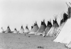 The people used virtually all parts of the body and skin. The women prepared the meat for food: by boiling, roasting or drying for jerky. This processed it to last a long time without spoiling, and they depended on bison meat to get through the winters.[10] The winters were long, harsh, and cold due to the lack of trees in the Plains, so people stockpiled meat in summer.[11] As a ritual, hunters often ate the bison heart minutes after the kill. The women tanned and prepared the skins to cover the tepees. These were made of log poles, with the skins draped over it. The tepee remained warm in the winter and cool in the summer, and was a great shield against the wind.[12]
