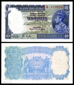 Reserve Bank of India-10 Rupees (1938), first year of banknote issue.