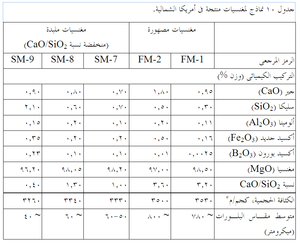 الشوائب في المغنسيا محكومة بتركيب المصدر الأصلى للمغنسيا (المياه المالحة أو مياه البحر)، وتركيب الدولوميت المكلس أو الحجر الجيري، وتقنيات التجهيز. ولا سيما كميات ونسبة CaO وSiO2 فهى تخضع لرقابة صارمة، ويُحافظ على B2O3 في مستويات متدنية للغاية. النتائج النهائية هى مغنسيات حرارية عالية الدرجة جاهزة لتصنيع المنتجات الحرارية. يبين جدول 9 وجدول 10 تركيب الرتب المختلفة من المغنسيا.