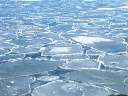 Pancake ice في البلطيق بالربيع بالقرب من ساحل السويد.