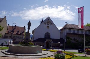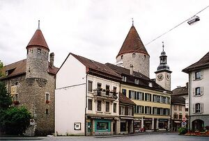 The period from 1536 to 1798 was reasonably quiet. The town expanded slightly beyond the city walls near the upper gate. While it was politically powerless, it became an economic center for cheese production and trade. It was the hub for most cheeses that were exported to France. In the 17th century the chapel and the statue erected in her (Notre-Dame-de-Pitié or de Compassion) became a pilgrimage destination. In 1665 the Capuchins took over the property, enlarged and embellished the chapel and built convent buildings on the site of the hospital. The hospital moved to the vicinity of the upper gate. The shrine attracted many pilgrims from the Counties of Burgundy and Savoy. In the 18th century, its popularity began to slowly wane. In 1750-51 a new building replaced the parish church of Saint-Pierre-aux-Liens, which had become too small. In 1763–1768, the bailiff's quarters and the audience hall in the castle were expanded and renovated.[4]