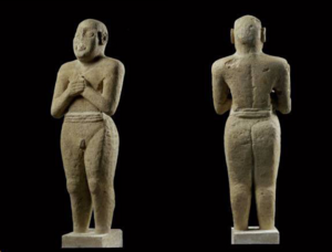 Among the ancient statues discovered in Tārūt is one of a naked man made out of dark grey stone. It was found in the 1950s by a man ploughing his field. It is 94 cm high, and the man is standing in a reverential posture, with wide eyes. It is almost certainly Sumerian in origin, though it was found about 1000 kilometers from the nearest city of Sumer. It is a very high quality object, but was almost destroyed by the superstitious villagers, who thought it had something to do with spirits (jinn), and so cut it in half and beheaded it. It has been restored and now stands the National Museum of Riyadh.[3]