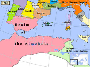 خلافة الموحدين أو دولة الموحدين أو الدولة الموحدية[110][111][112]:246) كانت امبراطورية مسلمة أمازيغية شمال أفريقية تأسست في القرن 12. في أوج نفوذها، كانت تسيطر معظم شبه الجزيرة الآيبرية (الأندلس) وشمال أفريقيا (المغرب الكبير).[113][114][115]