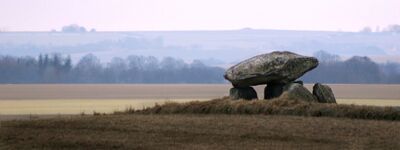 A burial from Bøgebakken at Vedbæk dates to c. 6,000 BC and contains 22 persons – including four newborns and one toddler. Eight of the 22 had died before reaching 20 years of age – testifying to the hardness of hunter-gatherer life in the cold north.[7] Based on estimates of the amount of game animals, scholars estimate the population of Denmark to have been between 3,300 and 8,000 persons in the time around 7,000 BC.[8] It is believed that the early hunter-gatherers lived nomadically, exploiting different environments at different times of the year, gradually shifting to the use of semi permanent base camps.[9]