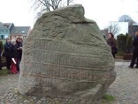 Gorm the Old (دنماركية: Gorm den Gamle, نورسية القديمة: Gormr gamli, لاتينية: Gormus Senex[13][14]), also called Gorm the Languid (دنماركية: Gorm Løge, Gorm den Dvaske), was the first historically recognized ruler of Denmark, reigning from ح. 936 to his death ح. 958.[15] He ruled from Jelling, and made the oldest of the Jelling Stones in honour of his wife Thyra. Gorm was born before 900 and died ح. 958. His rule marks the start of the Danish monarchy and royal house (see Danish monarchs' family tree).[15]