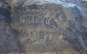 Herodotus wrote of the Garamantes hunting the Ethiopian Troglodytes with their chariots; this account was associated with depictions of horses drawing chariots in contemporary cave art in southern Morocco and the Fezzan, giving origin to a theory that the Garamantes, or some other Saran people, had created chariot routes to provide Rome and Carthage with gold and ivory. However, it has been argued that no horse skeletons have been found dating from this early period in the region, and chariots would have been unlikely vehicles for trading purposes due to their small capacity.[5]
