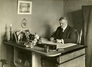 Before 1790 music was found in Lutheran churches and in folk traditions.[37] In 1790 music lovers founded the Åbo Musical Society; it gave the first major stimulus to serious music by Finnish composers. In the 1880s, new institutions, especially the Helsinki Music Institute (since 1939 called the Sibelius Academy), the Institute of Music of Helsinki University and the Helsinki Philharmonic Orchestra, integrated Finland into the mainstream of European music. By far the most influential composer was Jean Sibelius (1865–1957); he composed nearly all his music before 1930.[38] In April 1892 Sibelius presented his new symphony Kullervo in Helsinki. It featured poetry from the Kalevala, and was celebrated by critics as truly Finnish music.[39]
