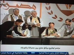 العداوة بين مصراته وتاورغاء نشبت في مطلع الثورة الليبية 2011، مازالت مستمرة حتى توقيع ميثاق صداقة بين البلدتين في 3 يونيو 2018. تستمر مدينة مصراتة في منع آلاف الأشخاص المهجرين من العودة إلى بيوتهم، بعد تعدي أهالي تاورغاء على مدينة مصراتة أثناء الثورة، و انتهاكم لحقوق الجيرة بشكل صارخ ( يمكن مشاهدة أرتال متطوعي تاورغاء و هم يرددون هتافات الموت لمصراتة على يوتيوب ).