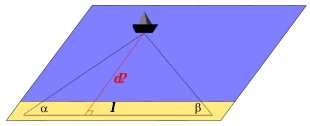 تستخدم عملية التثليث في إيجاد إحداثيات والبعد لسفينة بالنسبة للشاطئ وذلك بقياس الزوايا بين نقطتين مرجعيتين