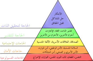 تتدرج الحاجات حسب أهميتها في شكل هرمي ويتكون هذا الهرم من :