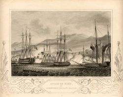 The Egyptians abandoned Beirut on 3 October. While preparing to attack them at Boharsef, Napier was ordered to relinquish command of the army to withdraw and hand over the land forces to the now recovered Brigadier-General Smith. To do so would have meant giving up the tactical initiative, and Napier accordingly disobeyed the order and continued with the attack against Ibrahim’s army. The ensuing Battle of Boharsef, on 10 October, was a hard-fought victory, one of the very few land battles won by a naval officer. By the end of the month the only coastal position still held by the Egyptians was عكا, which Stopford was instructed to recapture. On 3 November the Mediterranean Fleet, with its Turkish and Austrian allies, moved into position against the western and southern sides of the town. The fire of the ships (48,000 rounds in all) was devastatingly accurate. A shell penetrated the main magazine in the south of the city, which exploded killing 1,100 men. That night Acre was occupied. British losses were only 18 men killed and 41 wounded. During the action, Napier had manoeuvred independently against Stopford’s orders and his division, by accident and mutual misunderstandings, left a space in the fleet’s deployment, not that this affected the outcome. Some captains wanted Napier to be court-martialled for insubordination, but Stopford did not push the issue.