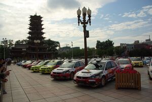 Parc Ferme at Zhangye International Rally 2011 in front of the Wooden Pagoda