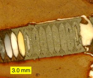 ومن الممكن أن تتصلد حبيبات رواسب وحبيبات صخرية وأحفوريات وتستبدل موادها بمعادن أخرى . وتنخفض درجة مساميتها خلال التصلد إلا في حالة تحلل المعادن.