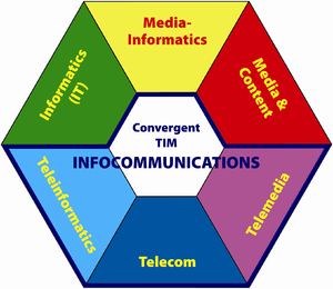 يتم استخدام مصطلح الاتصالات المعلوماتية Infocommunications أحيانا بالتبادل مع تكنولوجيا المعلومات والاتصالات. في الإتصالات المعلوماتية الواقع هو التوسع في الاتصالات السلكية واللاسلكية مع معالجة المعلومات ووظائف معالجة المحتوى على أساس تكنولوجيا رقمية مشتركة. للمقارنة بين هذه المصطلحات وغيرها، انظر. .[5]