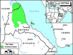 خريطة انتشار شعب التگره في إرتريا والسودان.