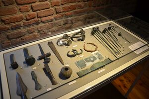 Tumulus culture societies traded with those in Scandinavia, Atlantic Europe, the Mediterranean region and the Aegean. Traded items included amber and metal artefacts.[11] From the beginning of the Middle Bronze Age there is evidence for the use of weighed metal as form of payment or money.[12][13][14] Weighing equipment has been found in central Europe dating from c. 1400 BC onwards.[15]