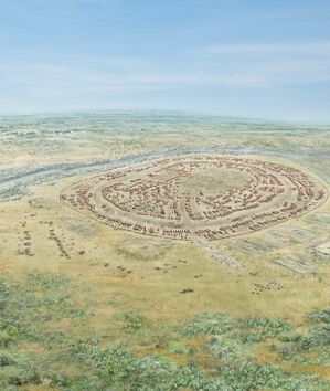 Reconstruction of the main occupation phase of the Maidanetske mega-site, c. 3800 BC.[58]