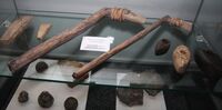 No examples of Cucuteni–Trypillia textiles have yet been found – preservation of prehistoric textiles is rare and the region does not have a suitable climate. However, impressions of textiles are found on pottery sherds (because the clay was placed there before it was fired). These show that woven fabrics were common in Cucuteni–Trypillia society.[70][71] Finds of ceramic weights with drilled holes suggest that these were manufactured with a warp-weighted loom.[72] It has also been suggested that these weights, especially "disposable" examples made from poor quality clay and inadequately fired, were used to weigh down fishing nets. These would probably have been frequently lost, explaining their inferior quality.[73]
