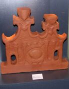 Characteristically, vessels were elaborately decorated with swirling patterns and intricate designs. Sometimes decorative incisions were added prior to firing, and sometimes these were filled with coloured dye to produce a dimensional effect. In the early period, the colours used to decorate pottery were limited to a rusty-red and white. Later, potters added additional colours to their products and experimented with more advanced ceramic techniques.[20] The pigments used to decorate ceramics were based on iron oxide for red hues, calcium carbonate, iron magnetite and manganese Jacobsite ores for black and calcium silicate for white. The black pigment, which was introduced during the later period of the culture, was a rare commodity: taken from a few sources and circulated (to a limited degree) throughout the region. The probable sources of these pigments were Iacobeni in Romania for the iron magnetite ore and Nikopol in Ukraine for the manganese Jacobsite ore.[66][67] No traces of the iron magnetite pigment mined in the easternmost limit of the Cucuteni–Trypillia region have been found to be used in ceramics from the western settlements, suggesting exchange throughout the entire cultural area was limited. In addition to mineral sources, pigments derived from organic materials (including bone and wood) were used to create various colours.[68]