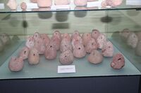 Clay figurines, 4900–4750 BC, discovered in Balta Popii, Romania (Cucuteni Neolithic Art Museum, Piatra-Neamţ, Romania). The "Council of the Goddesses" was discovered consisting of 36 artifacts: 21 anthropomorphic statuettes, 13 thrones, 1 cone and 1 bead.[37]