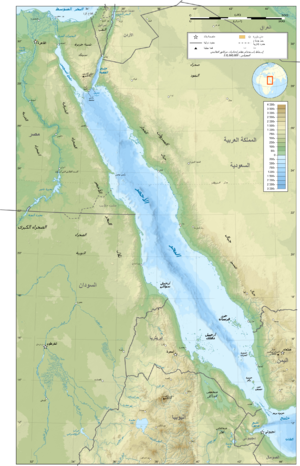 خريطة طبوغرافية للبحر الأحمر والدول المحيطة به.