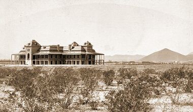 With no parties willing to provide land for the new institution, the citizens of Tucson prepared to return the money to the Territorial Legislature until two gamblers and a saloon keeper decided to donate 40 acres to the Board of Regents.[11] Construction of Old Main, the first building on campus, began on October 27, 1887, and classes met for the first time in 1891 with 32 students in Old Main, which is still in use today.[12] Because there were no high schools in Arizona Territory, the university maintained separate preparatory classes for the first 23 years of operation.[13]