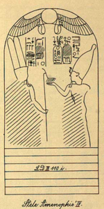 Between the shrines of Merenptah and Ramesses II a stele was erected depicting Merenptah and a son (likely Sety-Merenptah, but the name has been destroyed) offering Maat to Amun-Re. The royals are accompanied by the Vizier Panehesy.[7]