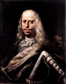 Cosimo frequently paid the Holy Roman Emperor, his feudal overlord, high dues.[40] He sent munitions to the Emperor during the Battle of Vienna. Tuscany was neutral during the War of the Spanish Succession, partly due to Tuscany's ramshackle military; a 1718 military review revealed that the army numbered less than 3,000 men, many of whom were infirm and elderly.[41] Meanwhile, the state's capital, Florence, had become full of beggars.[42] Europe heard of the perils of Tuscany, and Joseph I, Holy Roman Emperor asserted a remote claim to the grand duchy (through some Medici descent), but died before he could press the matter. The Treaty of the Hague reconfirmed the statuses of Tuscany and Parma-Piacenza as imperial fiefs.[43]