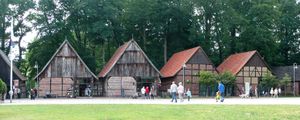 Half-timbered barn with brick infill. Uetersen, Germany. This barn's proportions resemble a Low German house.
