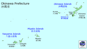 جزر أوكيناوا، باستثناء الجزيرة الرئيسية، تحتوي على ثلاث مجموعات من الجزر الأصغر: مجموعة جزر كراما، يوكاتسو، وإهيا-إزنا.[1][3][4]