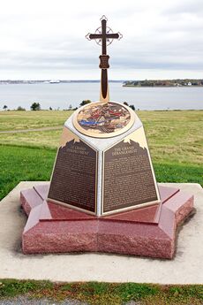 48. ^ Acadian Expulsion (the Great Upheaval) Archived أغسطس 9, 2019 at the Wayback Machine at The Canadian Encyclopedia, accessed September 1, 2019