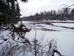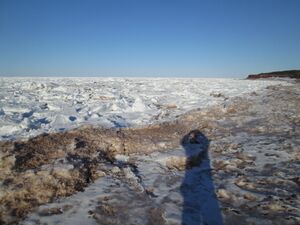 Winters are moderately cold and long but are milder than inland locations, with clashes of cold Arctic air and milder Atlantic air causing frequent temperature swings.[6] The climate is considered to be more humid continental climate than oceanic since the Gulf of St. Lawrence freezes over, thus eliminating any moderation.[6] The mean temperature is −7 °C (19 °F) in January.[7] During the winter months, the island usually has many storms (which may produce rain as well as snow) and blizzards since during this time, storms originating from the North Atlantic or the Gulf of Mexico frequently pass through.[6] Springtime temperatures typically remain cool until the sea ice has melted, usually in late April or early May.