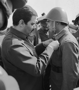 محمد داوود خان، رئيس جمهورية أفغانستان من 1973 حتى 1978، أطيح به أثناء ثورة ثور (ثورة أبريل) إثر وفاة مير أكبر خيبر، a Parchamite politician from the People's Democratic Party of Afghanistan (PDPA) who died under mysterious circumstances.[1] حفيظ الله أمين, a Khalq, was the coup's chief architect.[2] نور محمد تراقي، the leader of the Khalqists, was elected Chairman of the Presidium of the المجلس الثوري, Chairman of the Council of Ministers and retained his post as General Secretary of the PDPA Central Committee.[3] وتحته كان ببرك كارمل، the leader of the Parcham faction, as Deputy Chairman of the Revolutionary Council[4] and Deputy Chairman of the Council of Ministers, Amin as Council of Ministers deputy chairman[5] and Minister of Foreign Affairs[3] and Mohammad Aslam Watanjar as Council of Ministers deputy chairman.[6] The appointment of Karmal, Amin and Watanjar as Council of Ministers deputy chairmen proved unstable, and it led to three different governments being established within the government; the Khalq faction was answerable to Amin, the Parchamites were answerable to Karmal and the military officers (who were Parchamites) were answerable to Watanjar.[7]