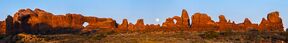 When people think of the desert southwest, the landscape of the Sonoran Desert is what mostly comes to mind.[20] The Sonoran Desert makes up the southwestern portion of the Southwest; most of the desert lies in Mexico, but its United States component lies on the southeastern border of California, and the western 2/3 of southern Arizona. Rainfall averages between 4 و 12 in (100 و 300 mm) per year, and the desert's most widely known inhabitant is the saguaro cactus, which is unique to the desert.[23][24] It is bounded on the northwest by the Mojave Desert, to the north by the Colorado Plateau and to the east by the Arizona Mountains forests and the Chihuahuan Desert.[25] Aside from the trademark saguaro, the desert has the most diverse plant life of any desert in the world,[23] and includes many other species of cacti, including the organ-pipe, senita, prickly pear, barrel, fishhook, hedgehog, cholla, silver dollar, and jojoba.[23][24] The portion of the Sonora Desert which lies in the Southwestern United States is the most populated area within the region. Six of the top ten major population centers of the region are found within its borders: Phoenix, Tucson, Mesa, Chandler, Glendale, and Scottsdale, all in Arizona. Also within its borders are Yuma and Prescott Arizona.[20]