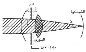 ـ وإذا كان القرص العيني للأداة أصغر من بؤبؤ العين فإن هذا القرص يقوم بوظيفة البؤبؤ الفعلي؛ فإذا كان نقَ نصف قطره، كان ن= ك لم نق2 ويكون: