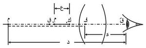 حيث ن: قرينة انكسار وسط الجسم، ونَ: قرينة انكسار وسط الخيال.