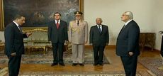 حازم عطية الله أثناء أداؤه اليمين الدستوري أمام الرئيس المؤقت عدلي منصور، 13 أغسطس 2013.