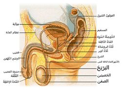 - البربخ: مجرى مكبب يقع فوق كل خصية يسلكه المني بعد خروجه من الخصية، وهنالك يبلغ المني قبل عبوره إلى القناة الناقلة.