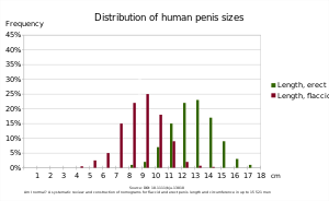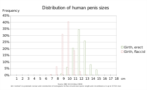 - ^ أ ب ت Veale, David; Miles, Sarah; Bramley, Sally; Muir, Gordon; Hodsoll, John (2015). "Am I normal? A systematic review and construction of nomograms for flaccid and erect penis length and circumference in up to 15 521 men". BJU International. 115 (6): 978–986. doi:10.1111/bju.13010. PMID 25487360.