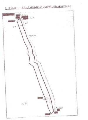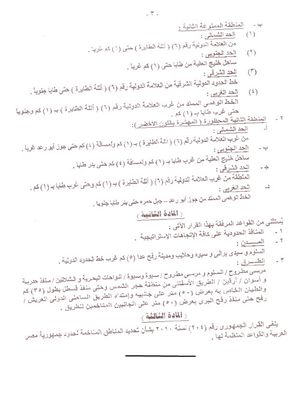 ثالثا: المنطقة المتاخمة للحدود الشرقية لجمهورية مصر العربية بالخريطة المرفقة بهذا القرار من العلامة الدولية رقم (1) حتى طابا بعمق (5) كم من الحدود السياسية الشرقية لجمهورية مصر العربية كالآتي: