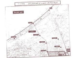 ساحل البحر المتوسط من العلامة الدولية رقم (1) حتى أبو شنار ولمسافة (5) كم تقريباً.