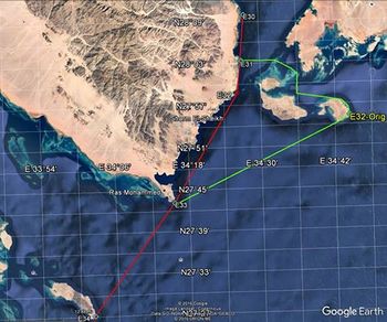 خط الحدود الدولية الشرقية من العلامة الدولية رقم (6) (أتلة الطايرة) ب(1) كم وجنوباً حتى غرب طابا ب(1) كم.